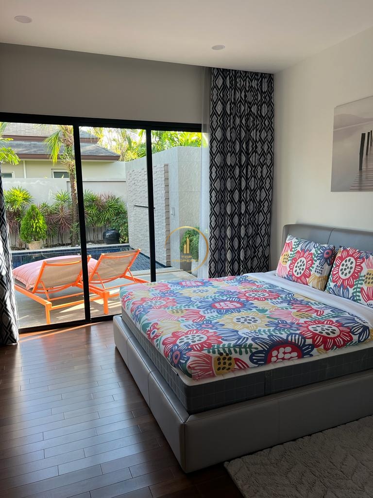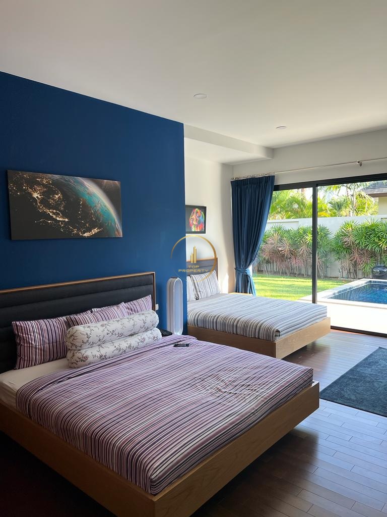 Relax in a luxurious villa with a tropical oasis of seclusion and tranquility, just minutes away from the beaches of Bangtao and Layan. Our spacious villa, 270 sq.m. with 3 bedrooms and a pool on a 700 sq.m. plot, is perfect for a comfortable stay for a large family with children or a group of friends.